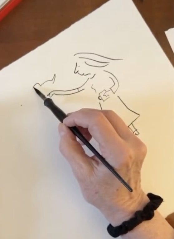 My wife, and New Yorker colleague, Liza Donnelly has, for many years, drawn live on social media; she was at it during last night’s State of the Union address, capturing moments as they happened (she once drew live while running the New York City Marathon). My New Yorker colleague, John Cuneo posts videos showing us how his beautifully intricate drawings come to be. Another colleague, Jason Chatfield, has a podcast centered around drawing live (Draw Me Anything!). I’m grateful to these folks (and others who I’m sure are out there) for sharing these moments with us.